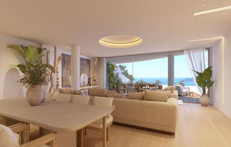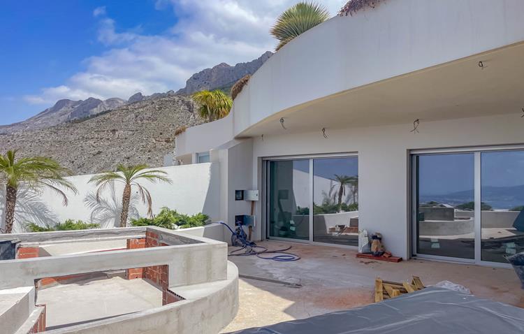 Very large luxurious apartment of 243m2 plus a terrace of 106m2! This exclusive apartment has a beautiful livingroom of 62m2 with an open plan kitchen and three bedrooms. There are 3 spacious bedrooms, 2 bathrooms and a guest toilet. The master bedroom of approximately 51m2 has a walk-in-wardrobe and an en-suite bathroom with a shower and a free-standing bathtub. The other 2 bedrooms share the second bathroom that has a shower, double washbasins and also a bathtub. All 3 bedrooms have direct access to the 106m2 private terrace and enjoy fantastic sea and mountain views. The finishings of the apartment are top of the range. All the bathrooms are equipped with quality sanitary ware, Hansgrohe taps, wall tiling from the Italian brand Trend with Corian countertops. The kitchen is equipped with Miele appliances and combined with high gloss lacquered furniture. The lounge-dining room is 63m2 and is equipped with lighting and a screen-projector that can transform the living into a home theatre. There is direct access from the living room the large terrace of over 53m2 with fantastic views of the bay of Altea and the surrounding area. On the terrace there is a private jacuzzi. The quality of this exclusive apartment is present in each and every one of the elements that form part of it: Travertine marble interior flooring, Ipe wood floors on the terrace, KNX home automation system, quality lighting, central heating with radiators and air conditioning via ducts. This luxury apartment also has a garage of 86m2 for several vehicles and a storage room, accessed directly from the hall on the same level as the apartment.